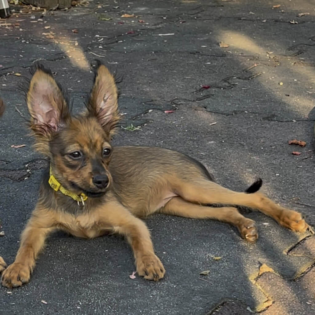 - Red with brown, female puppy