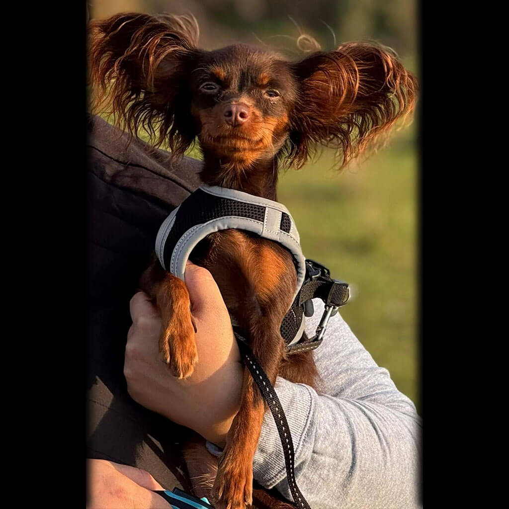 If possible she likes travelling with us, and she is a good dog on leash. But she doesnt like if bigger dogs pushing her.