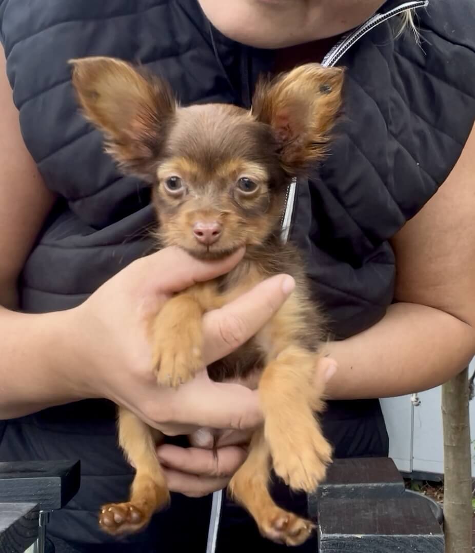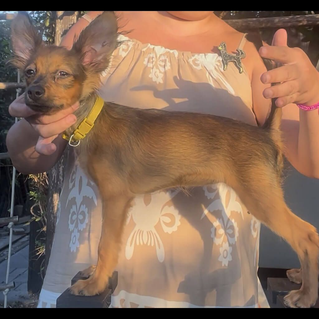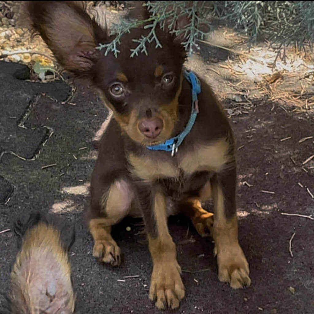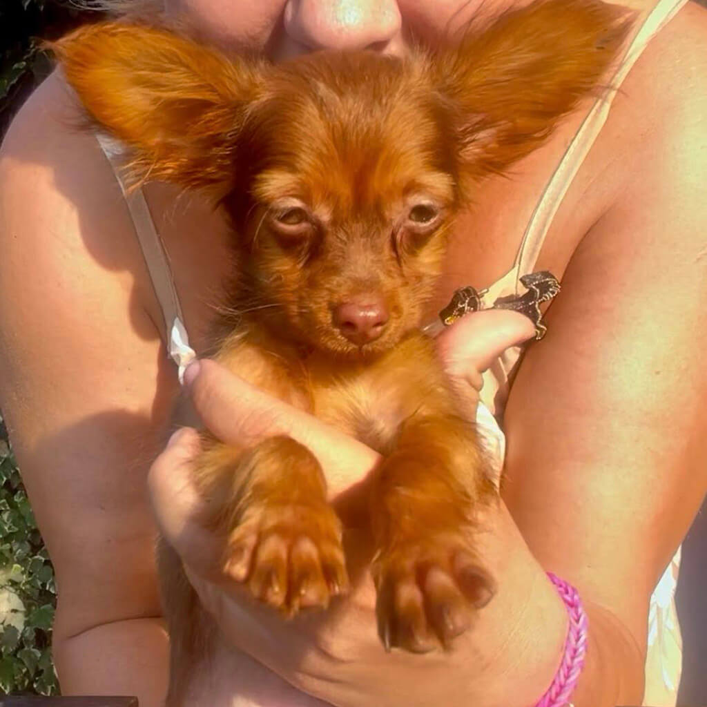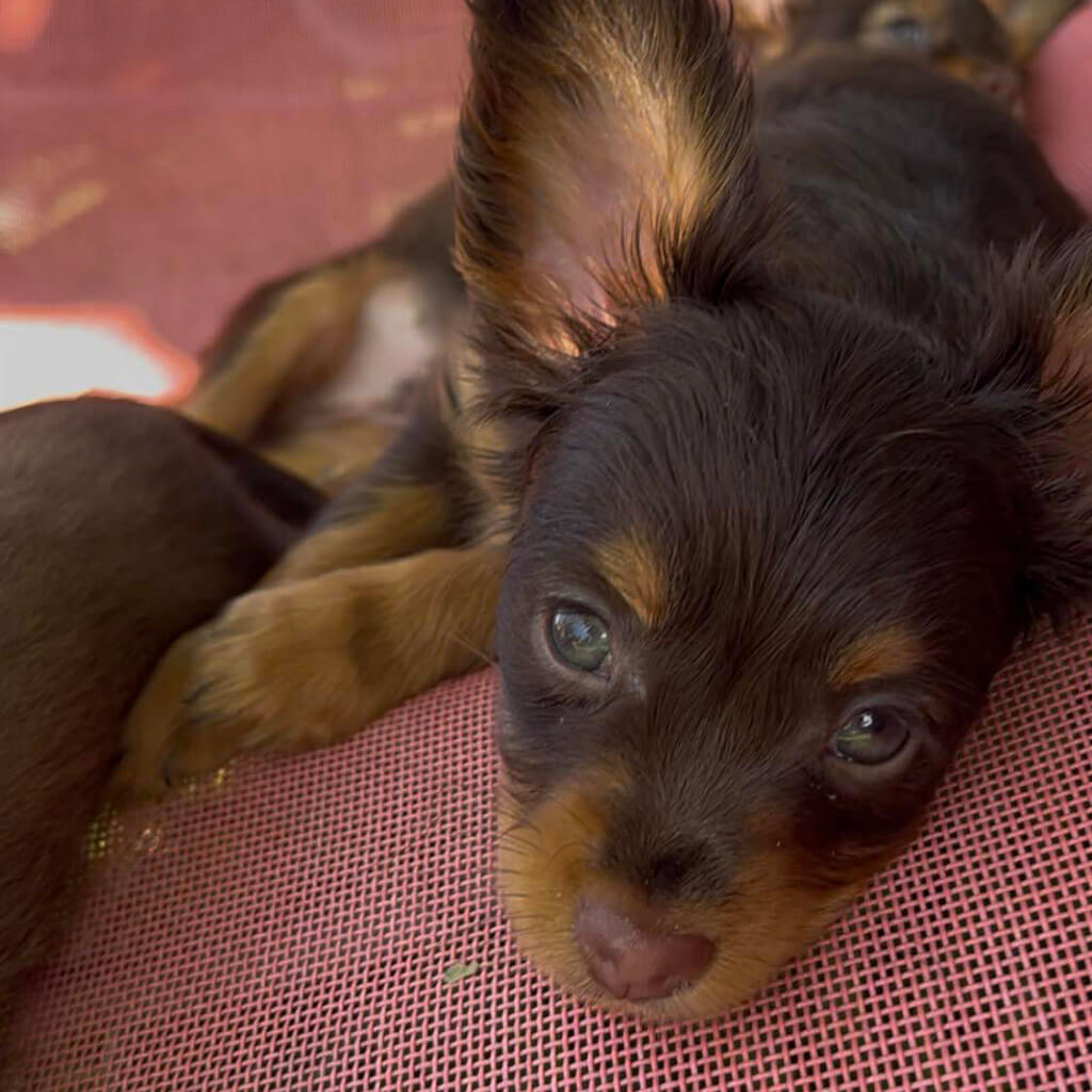 - Red with brown, female puppy