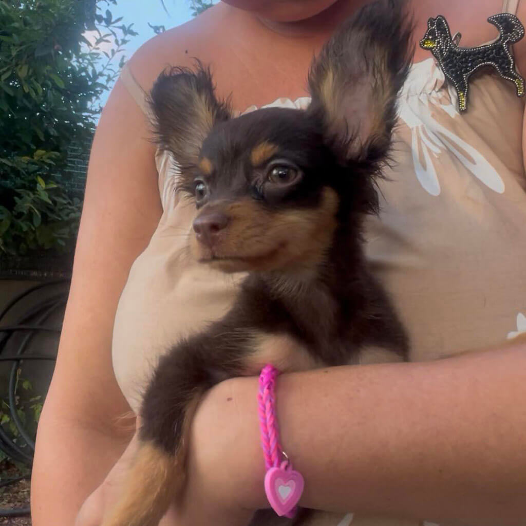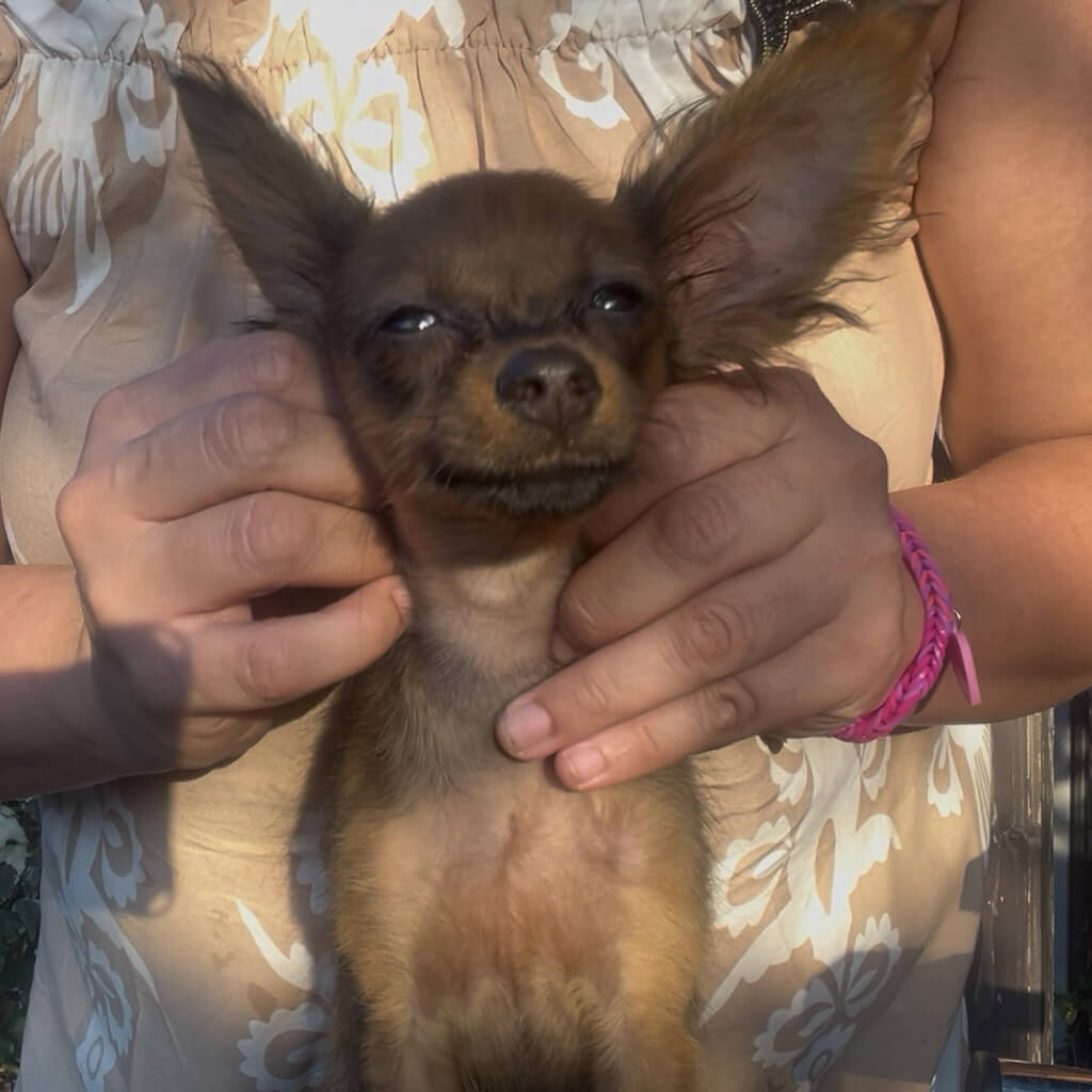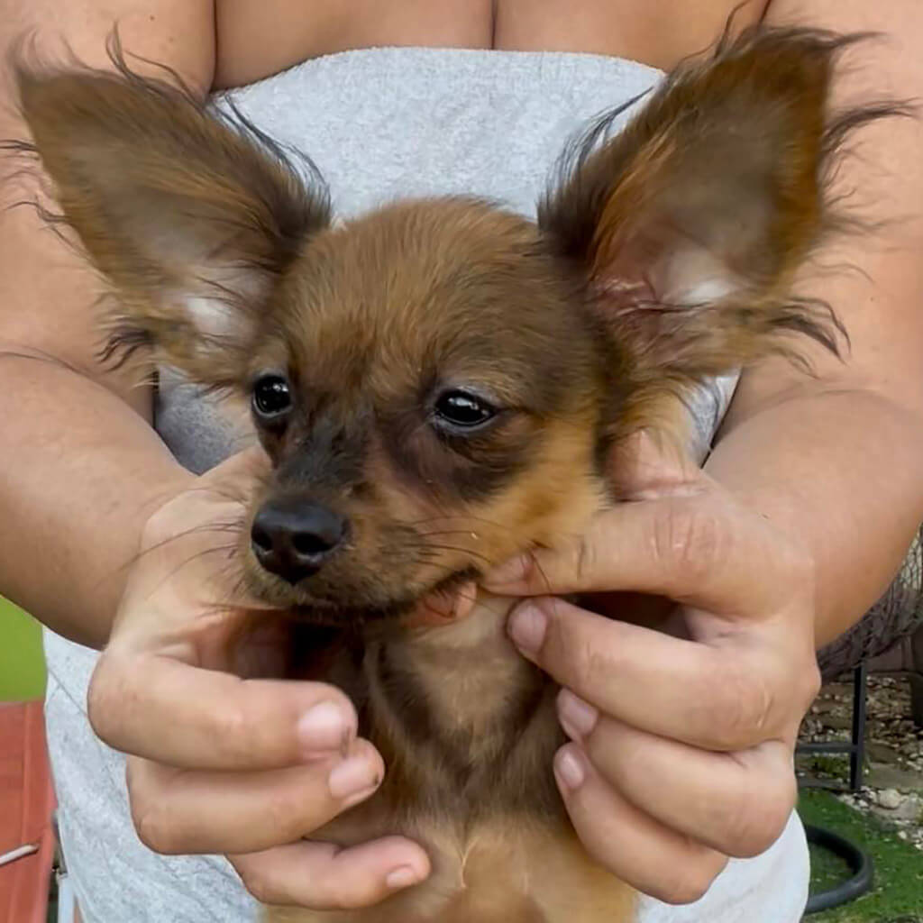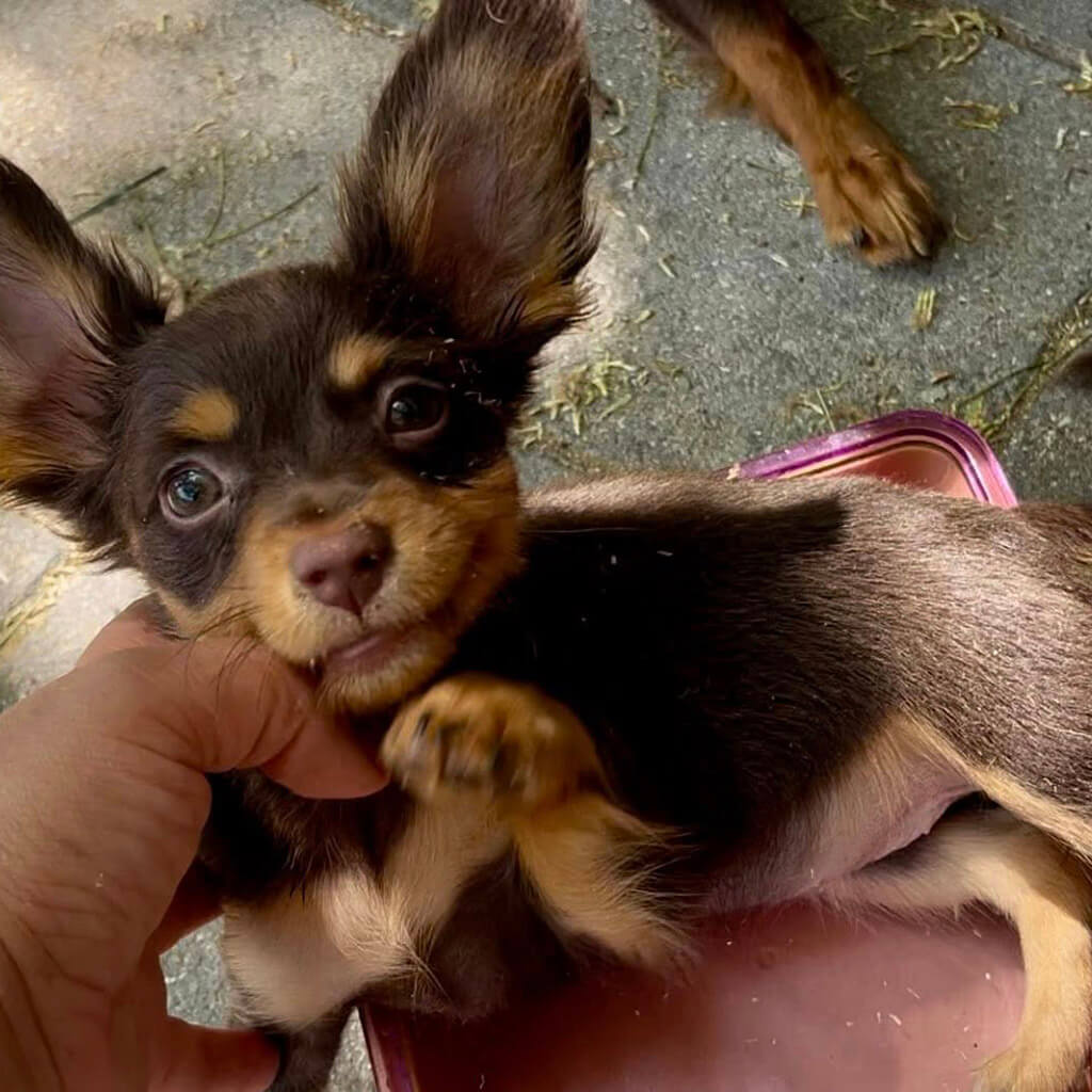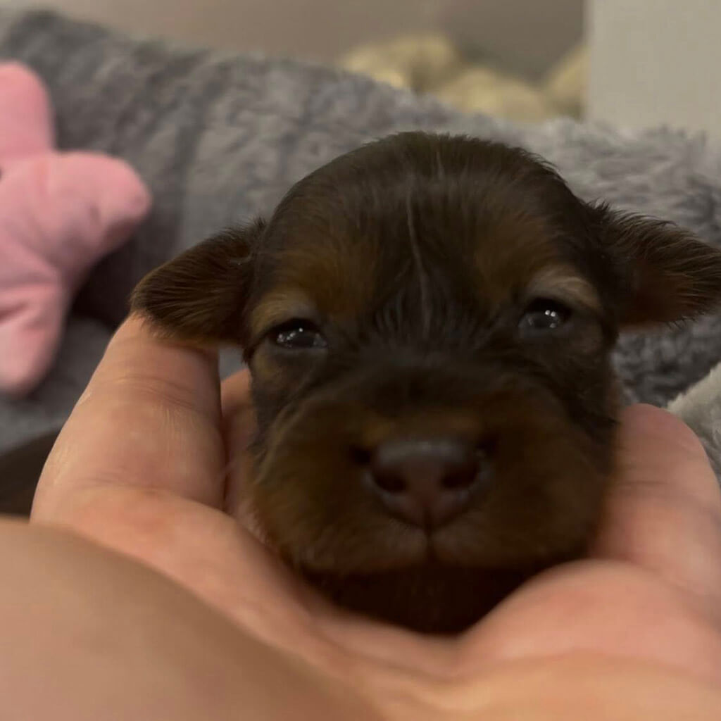 - Red with brown, female puppy
