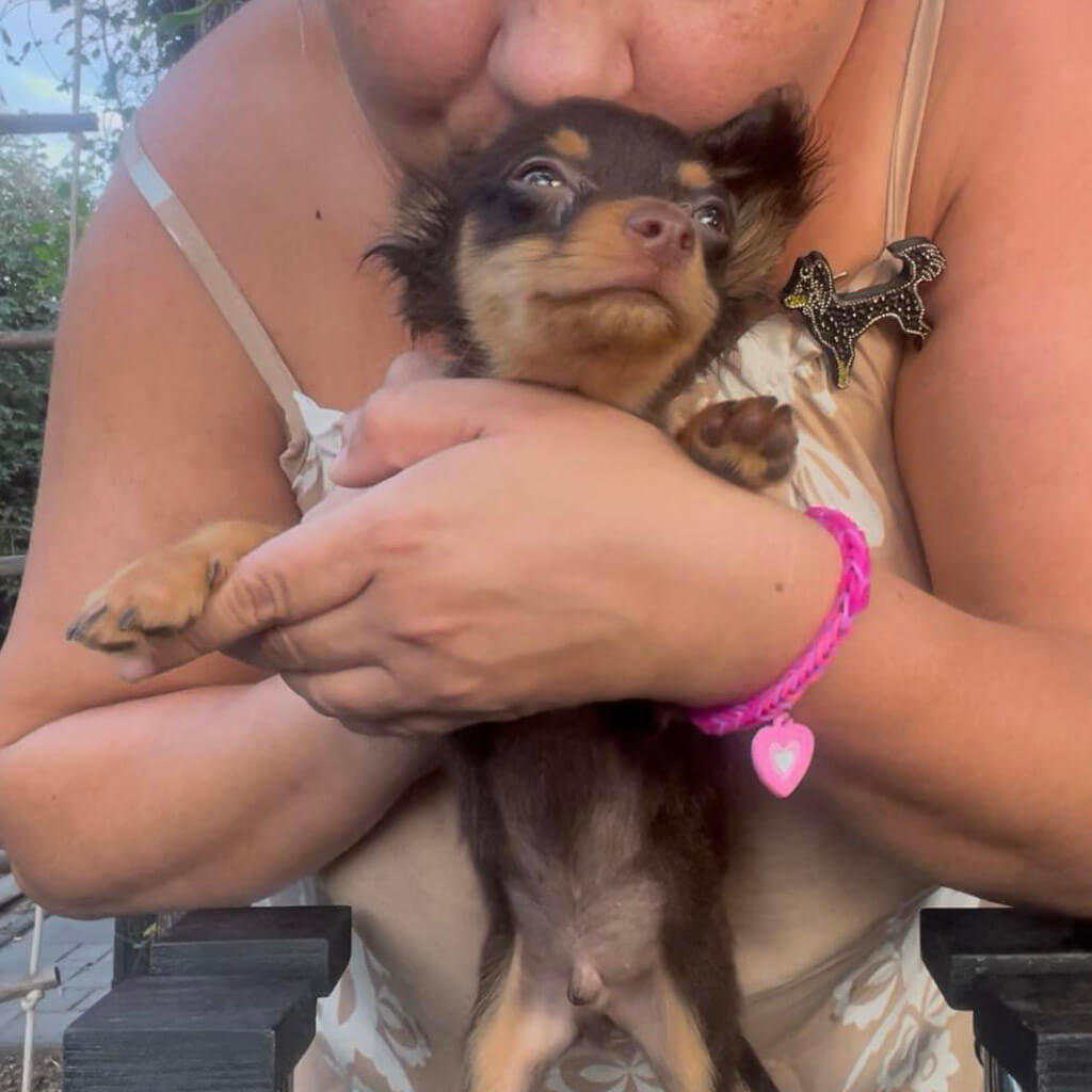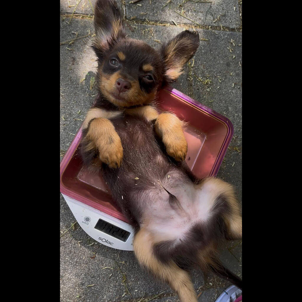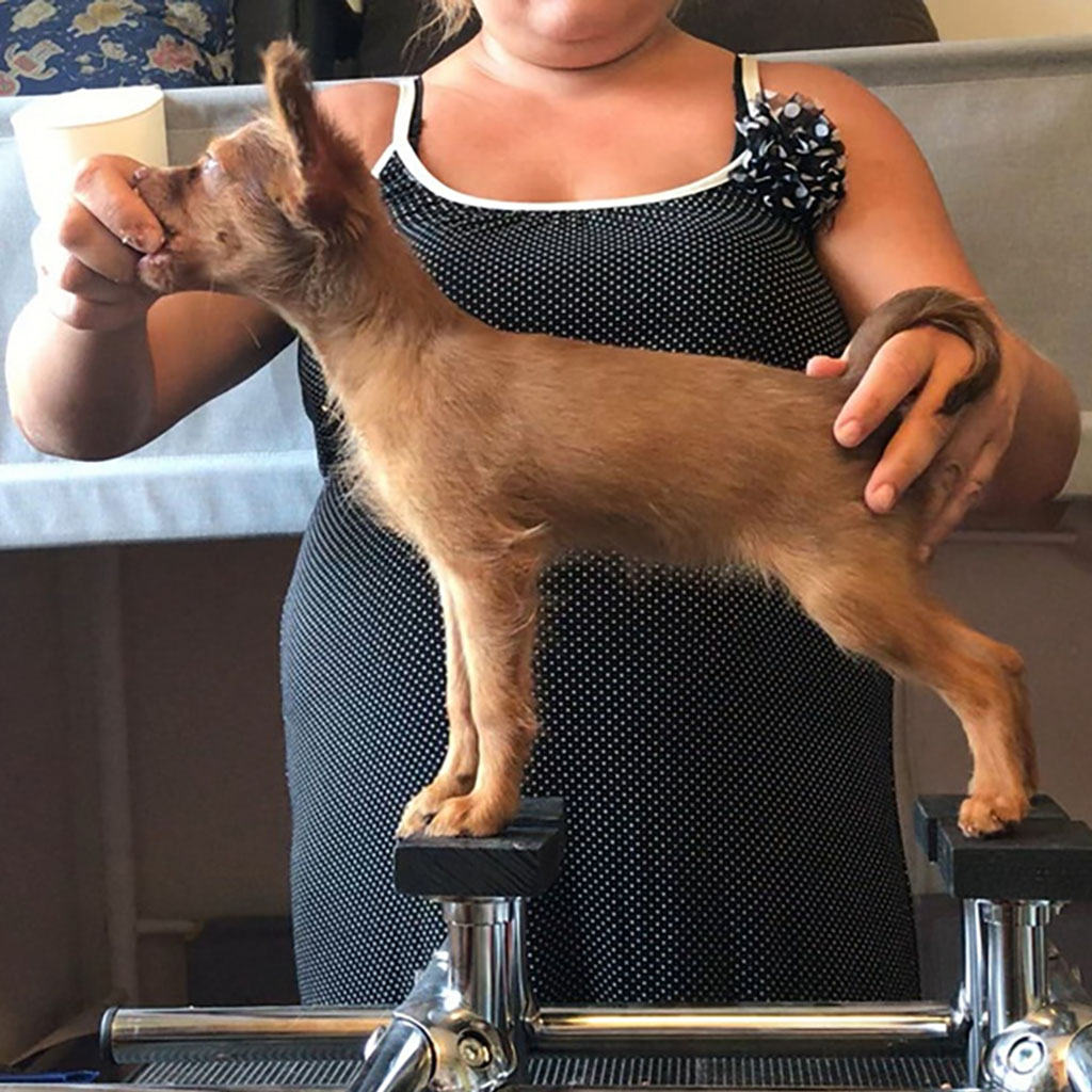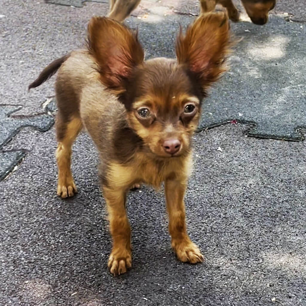 - Red with brown, female puppy