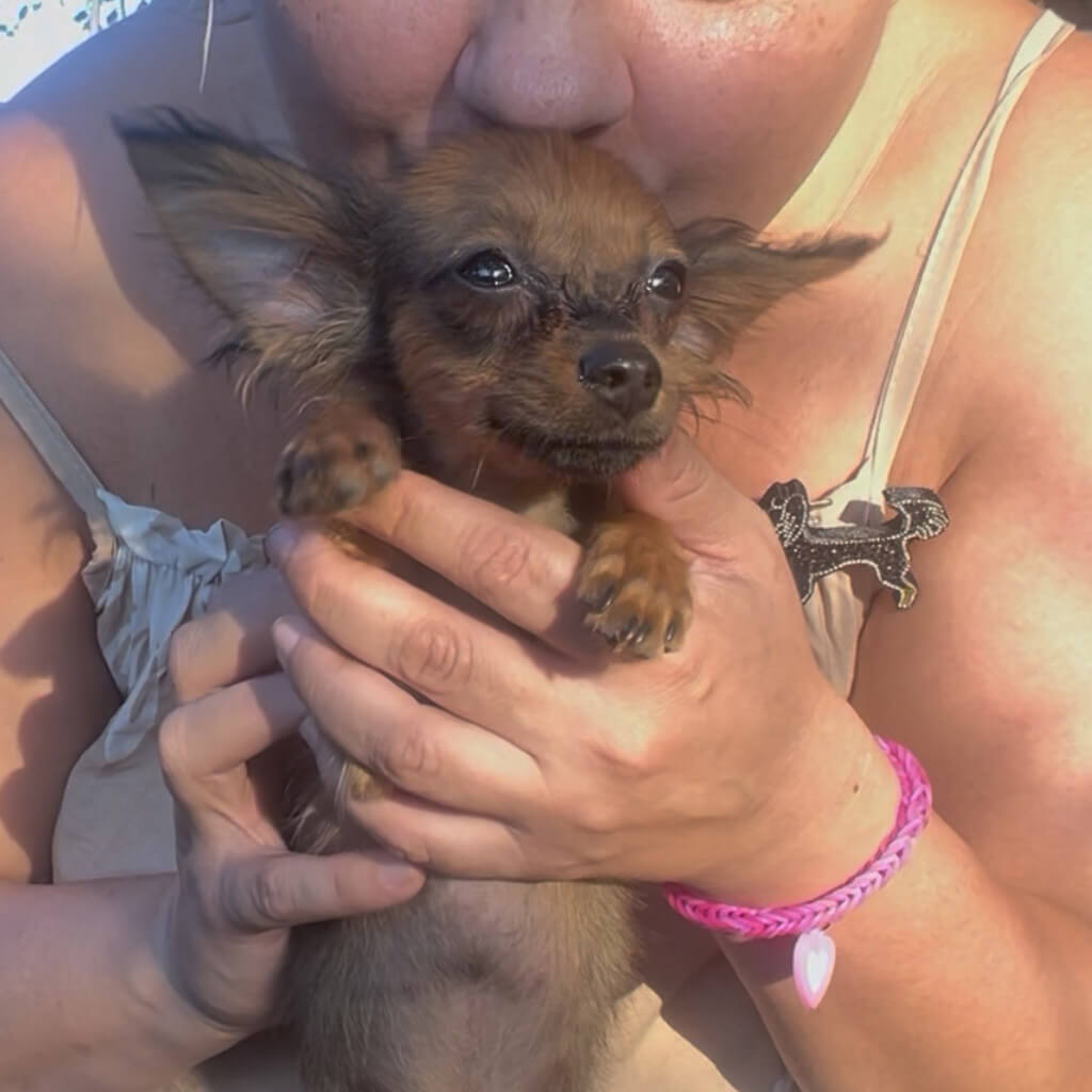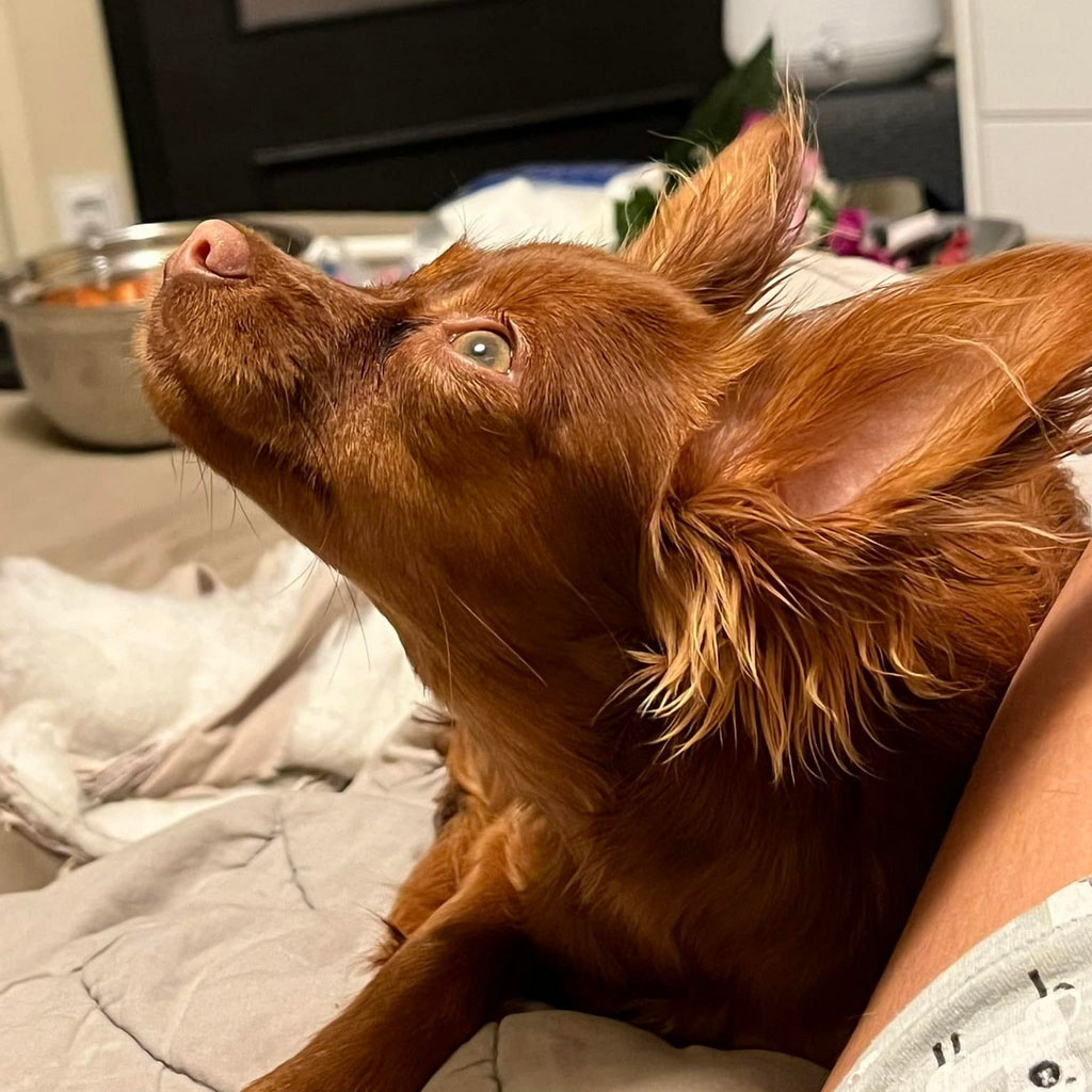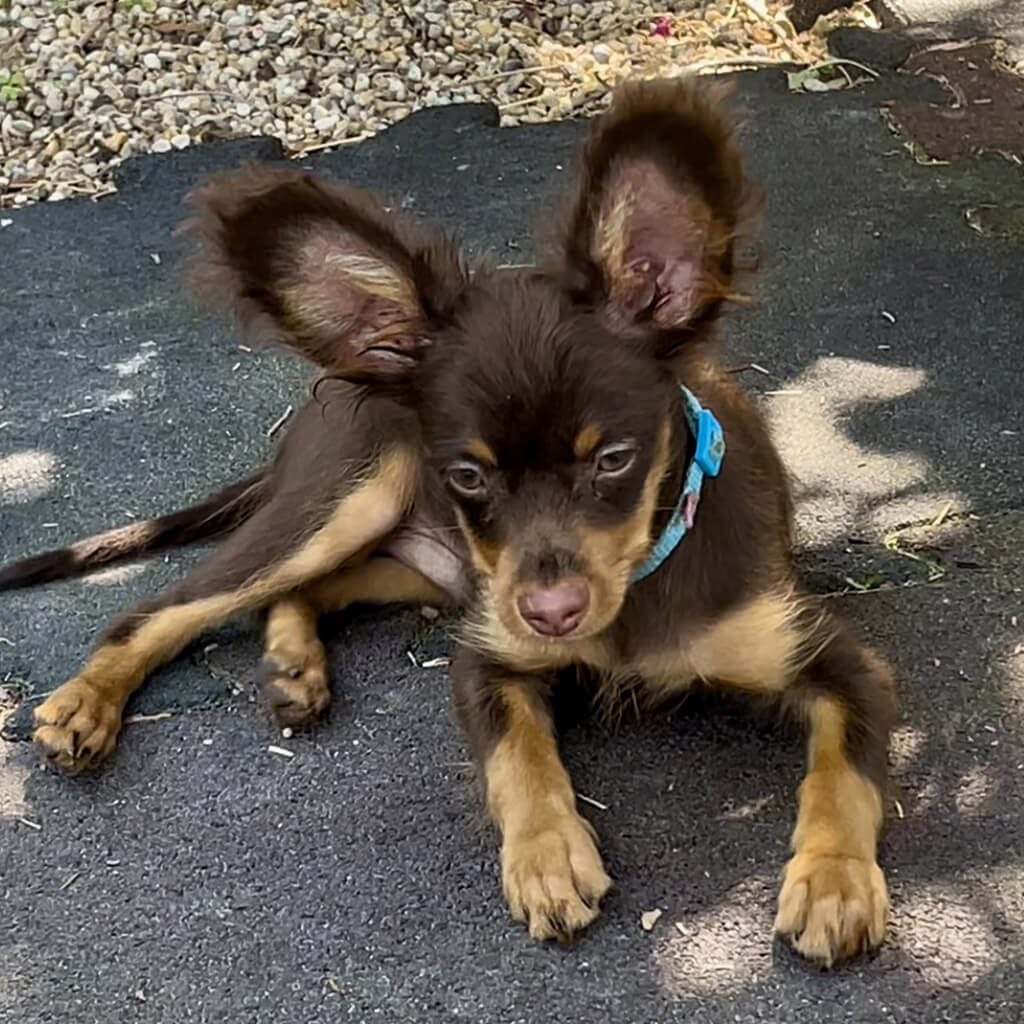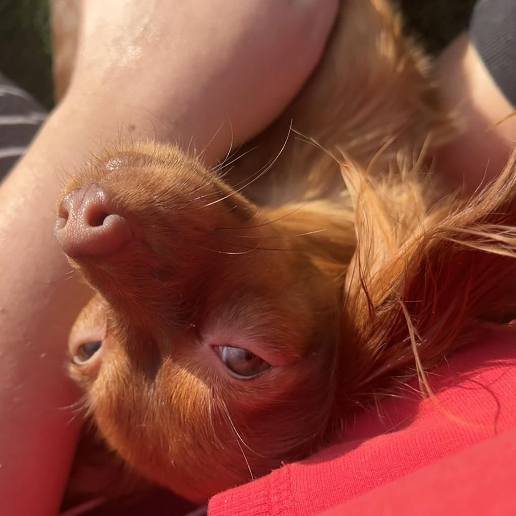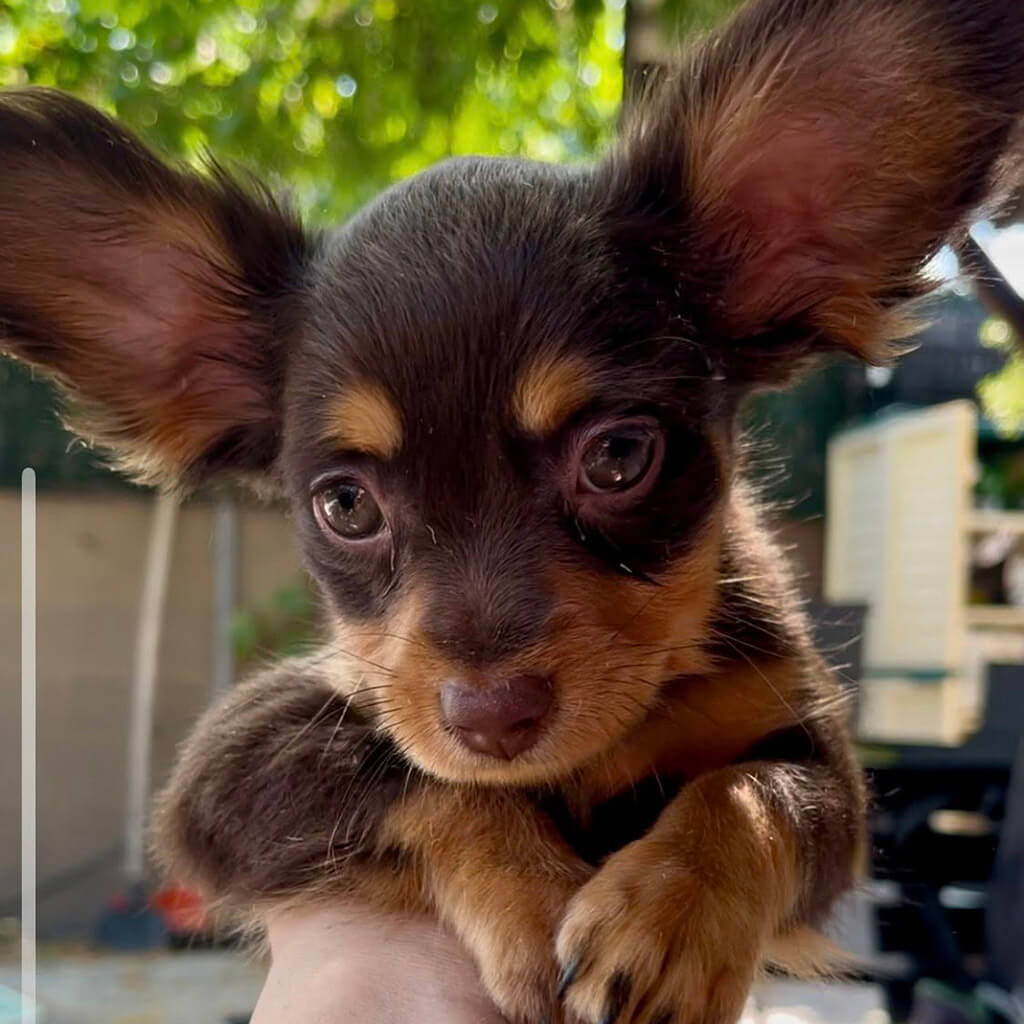 - Red with brown, female puppy