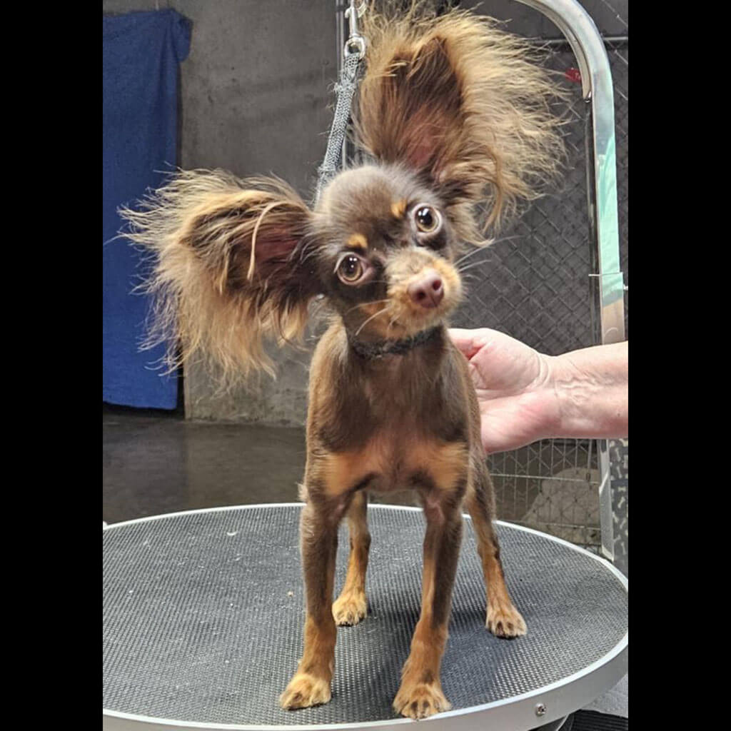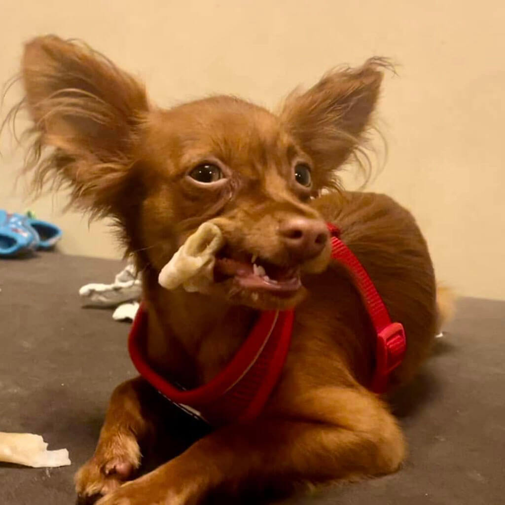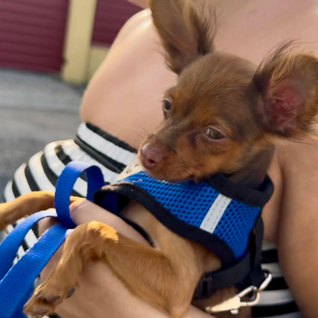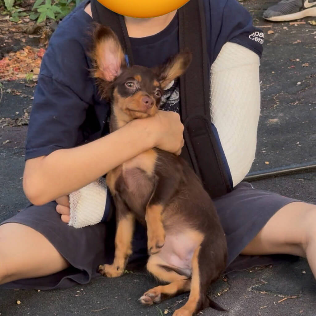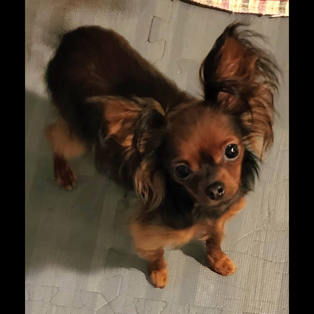 - Red with brown, female puppy