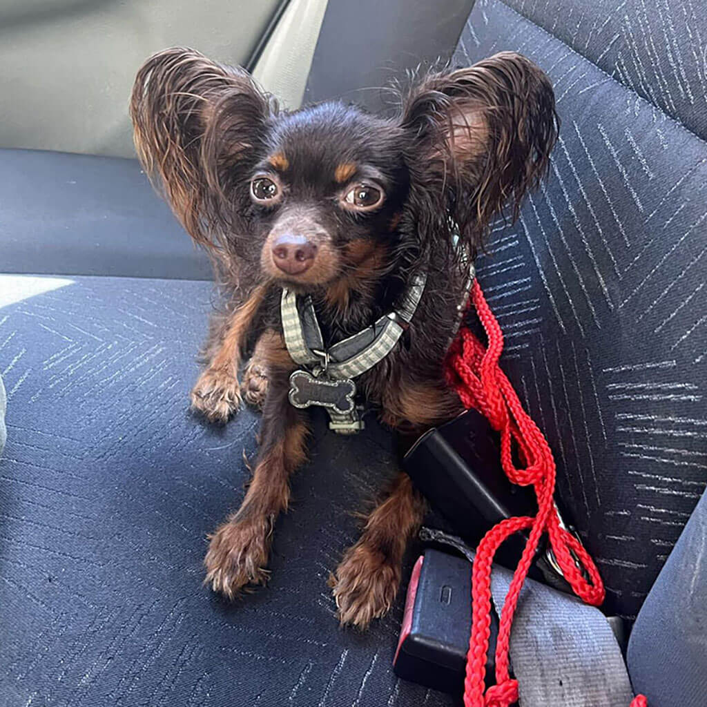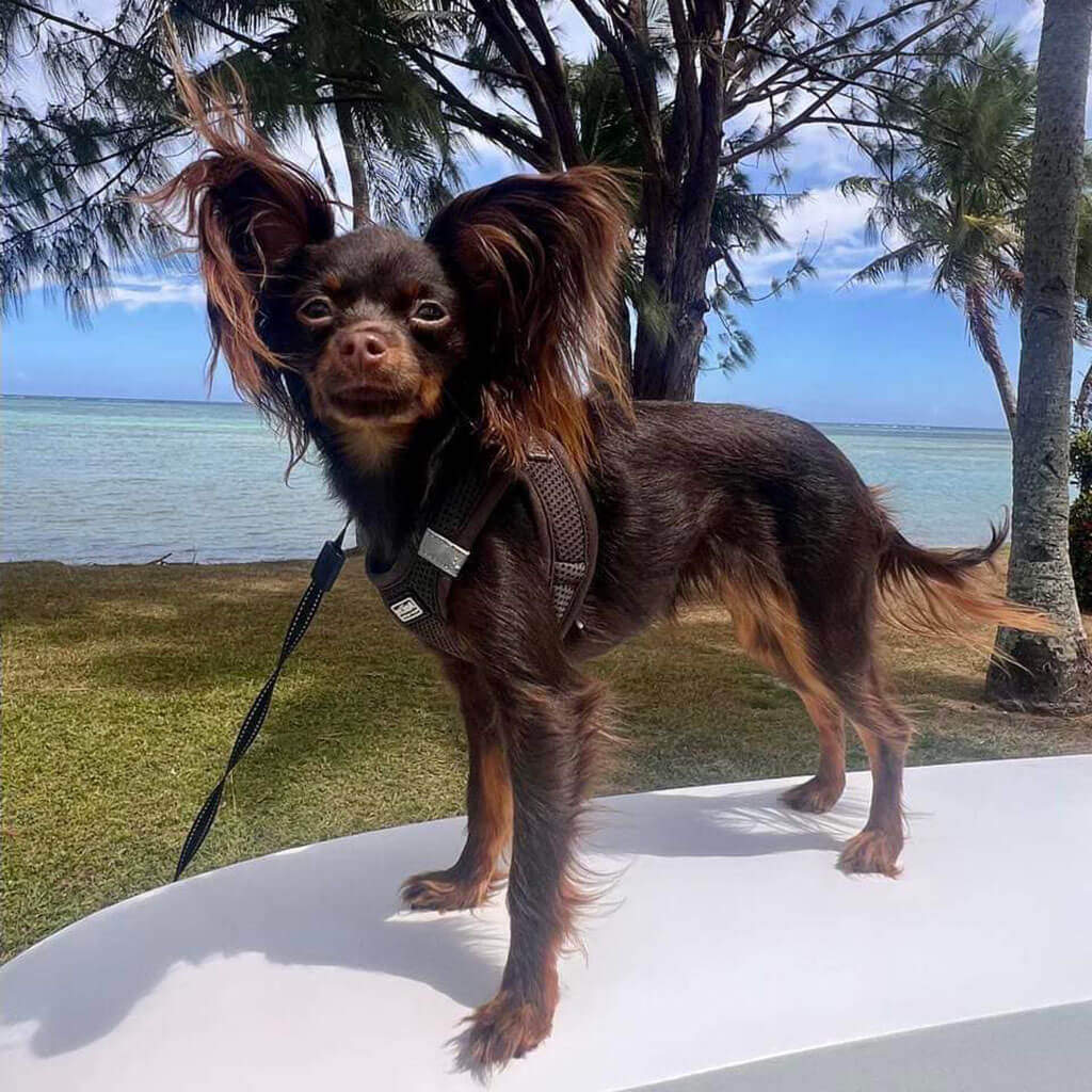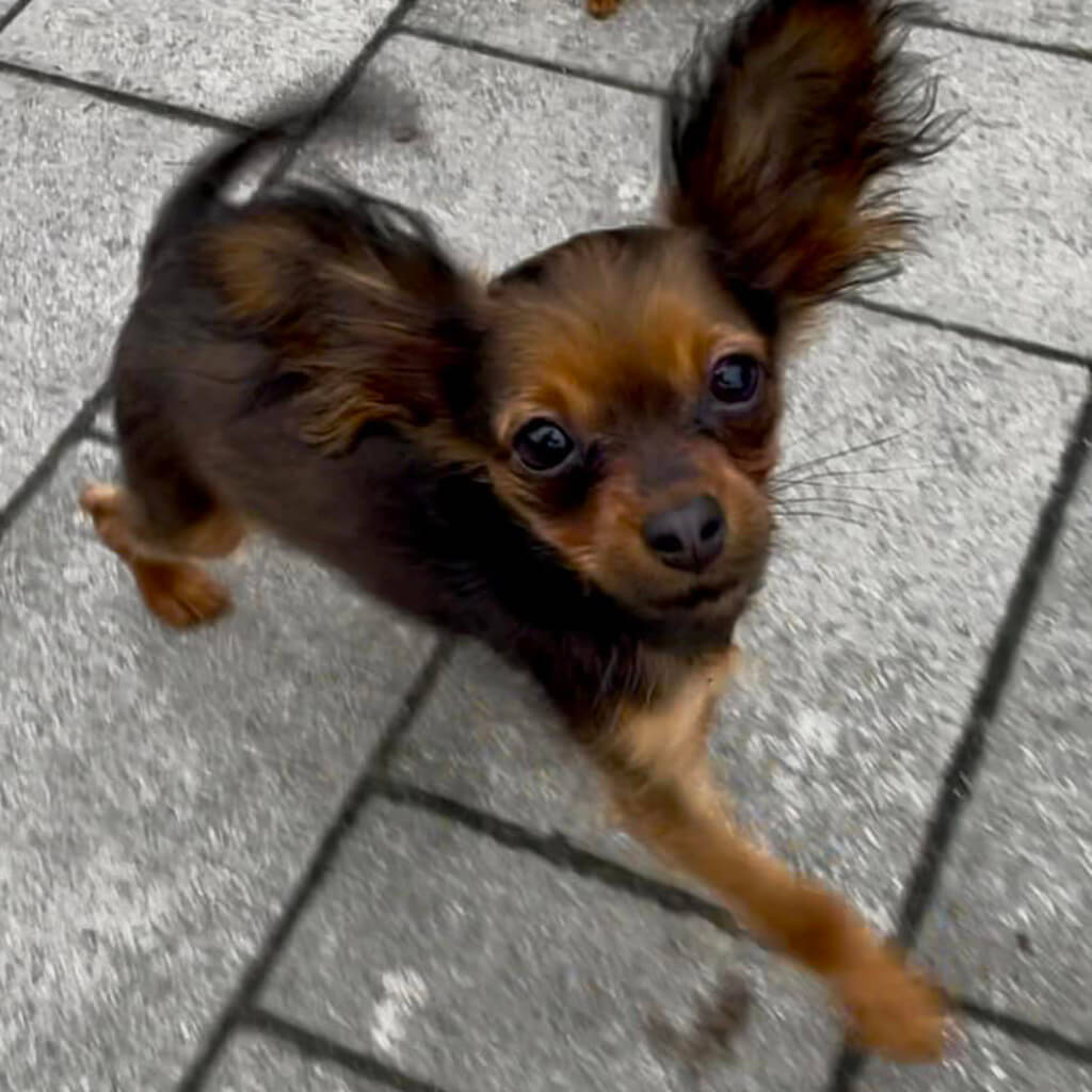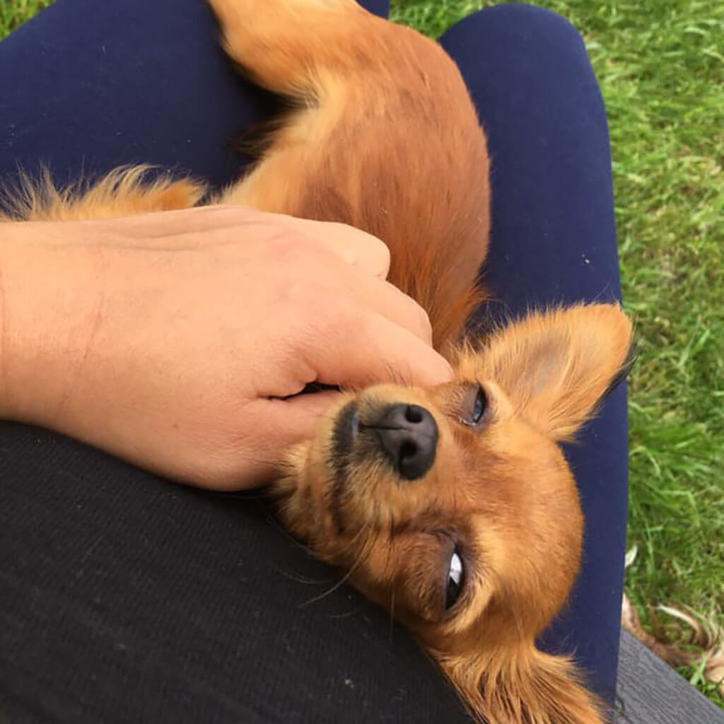 If possible she likes travelling with us, and she is a good dog on leash. But she doesnt like if bigger dogs pushing her.