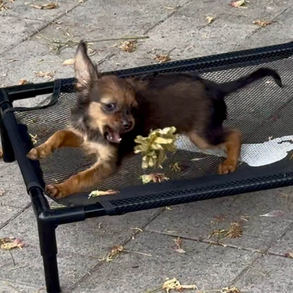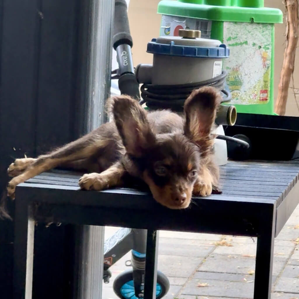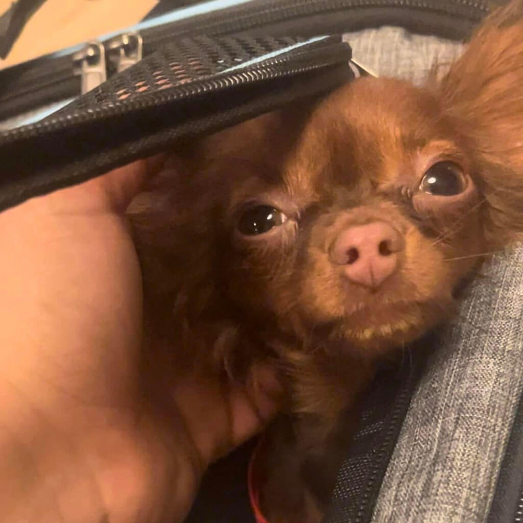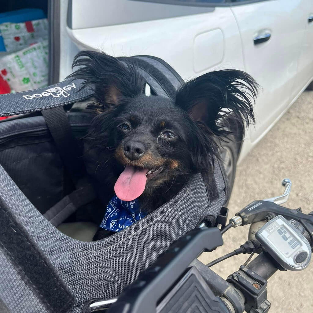 If possible she likes travelling with us, and she is a good dog on leash. But she doesnt like if bigger dogs pushing her.