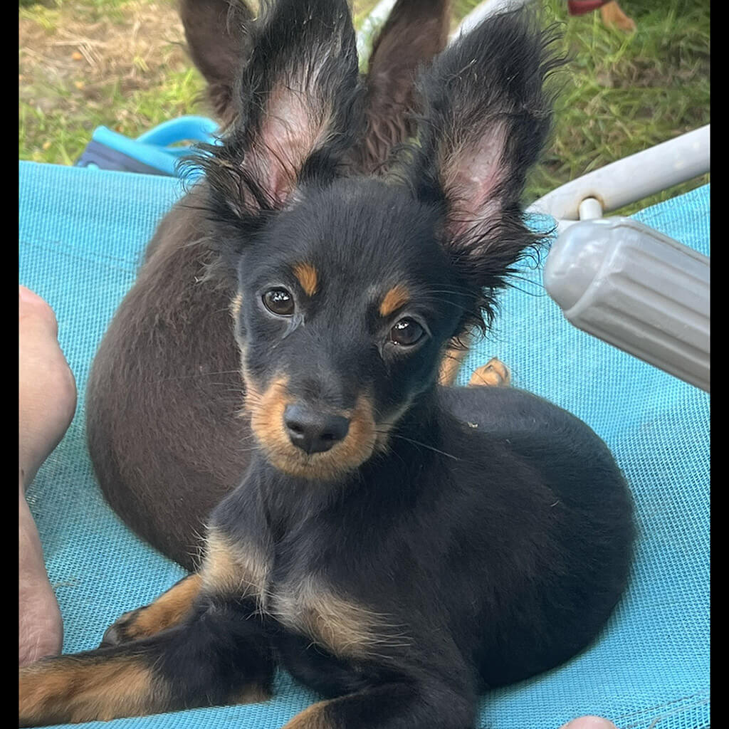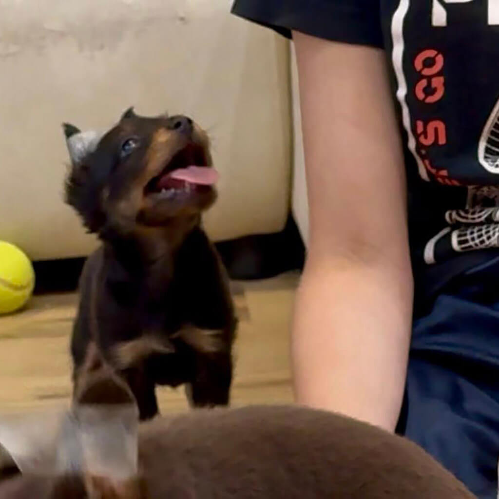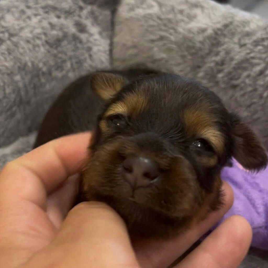 - Red with black, female puppy
