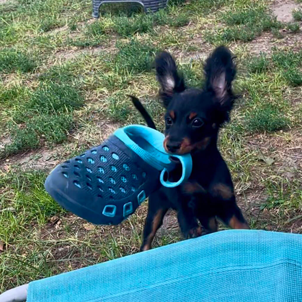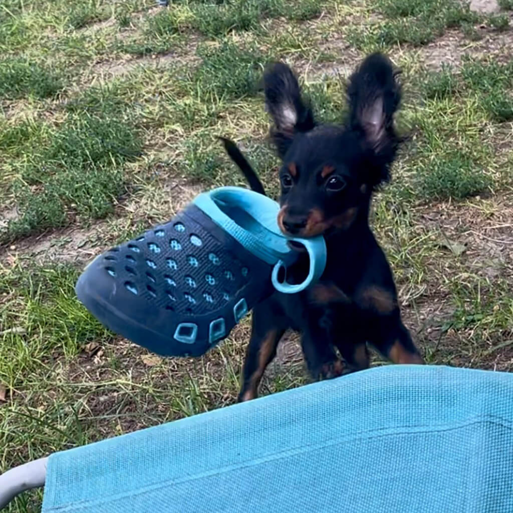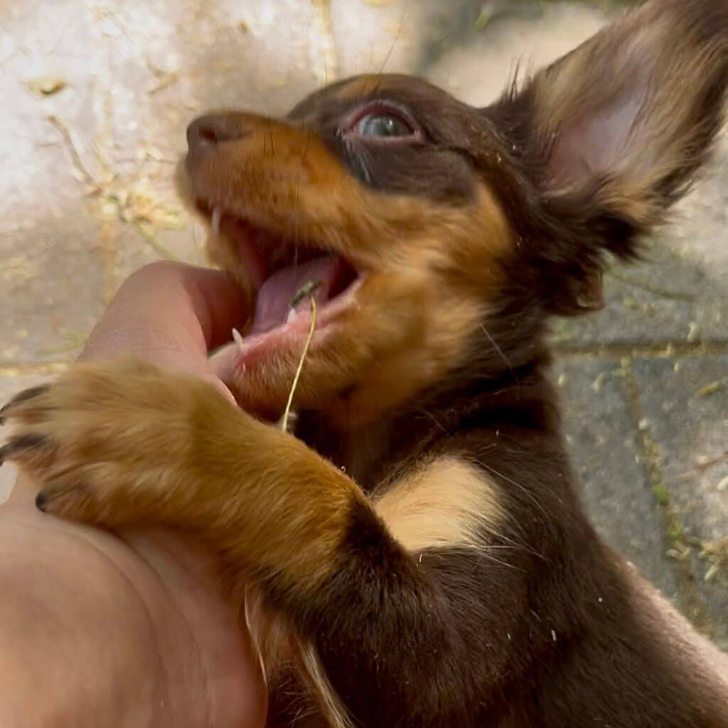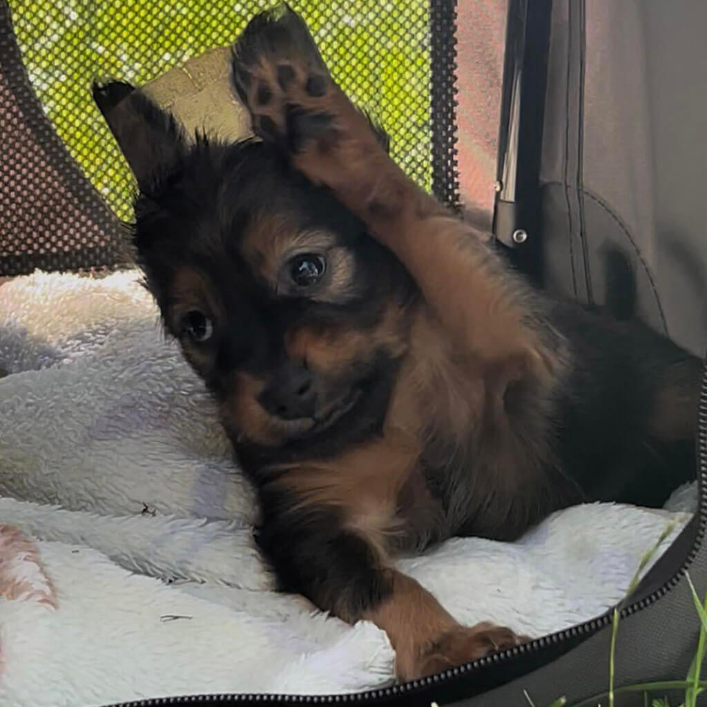 - Red with black, female puppy