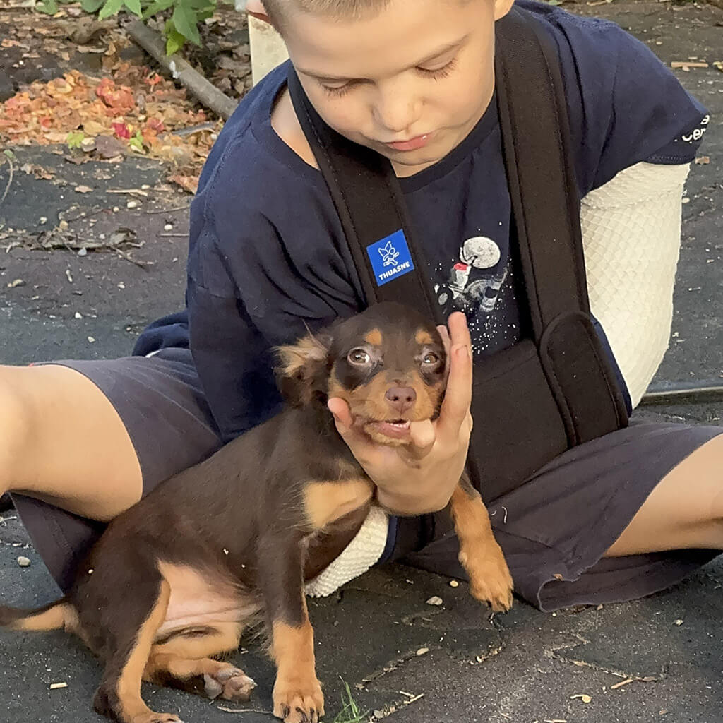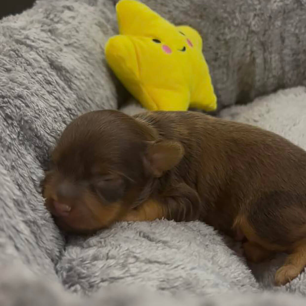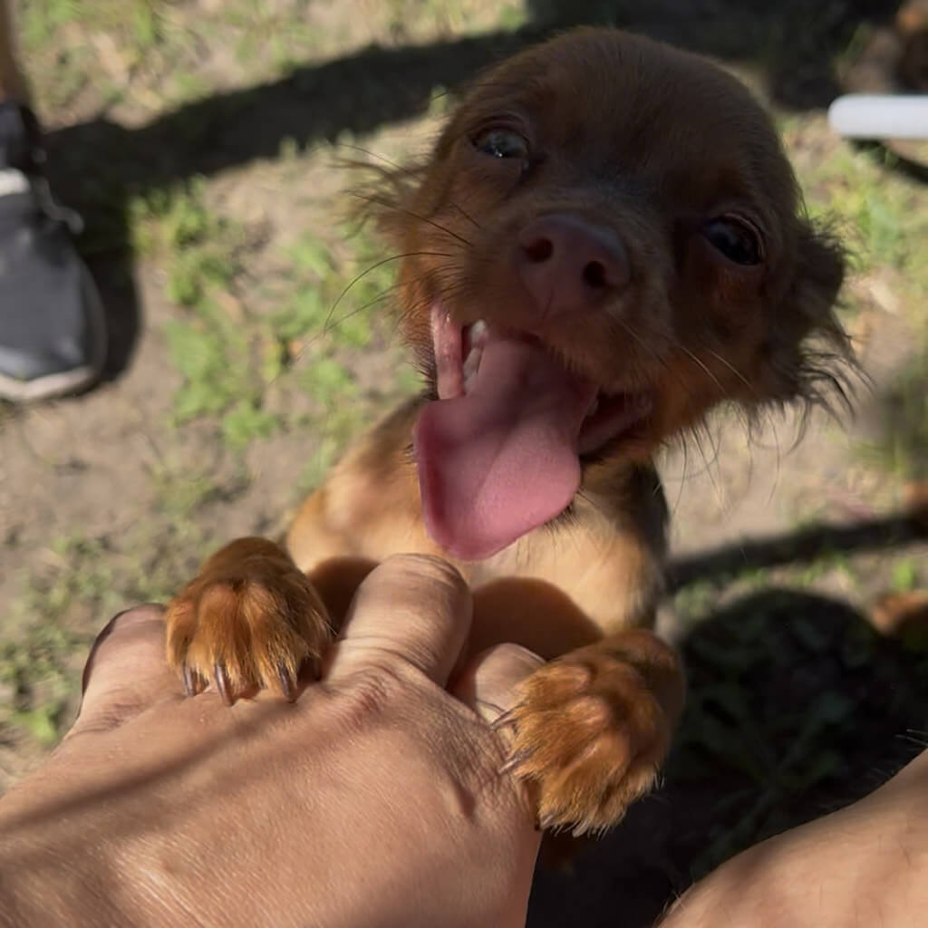 - Red with brown, male puppy