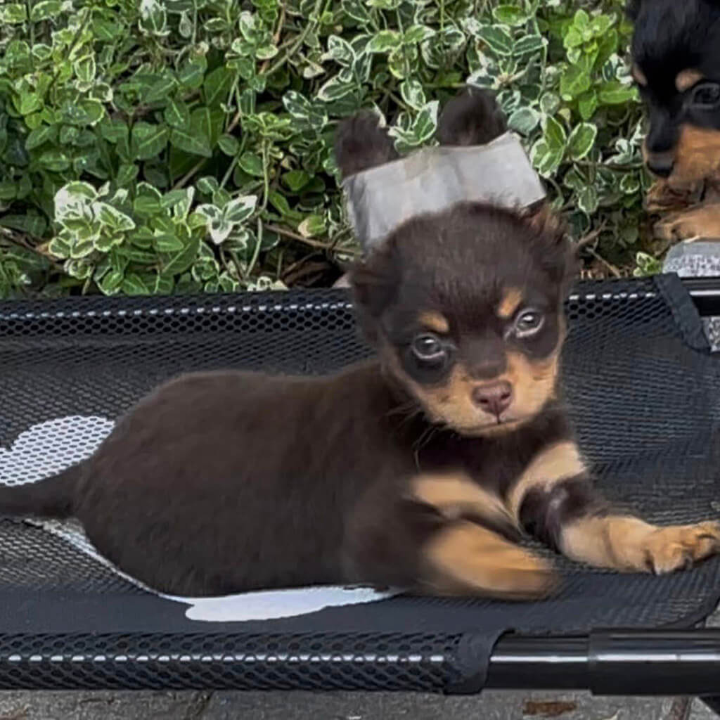 - Brown and tan, female puppy